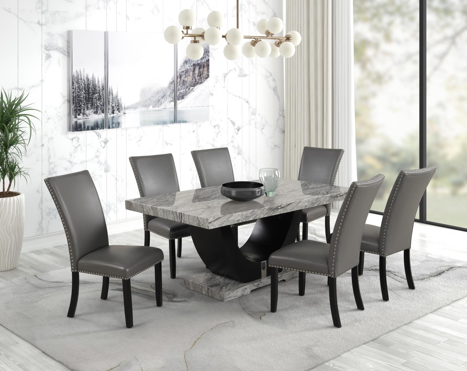Transform your dining area into a sophisticated showpiece with the Star Furniture 7-Piece Modern Marble Dining Set with Sculpted Base and Six Chairs. This stunning set blends contemporary elegance with luxurious design, creating a dining experience that is as stylish as it is functional.
