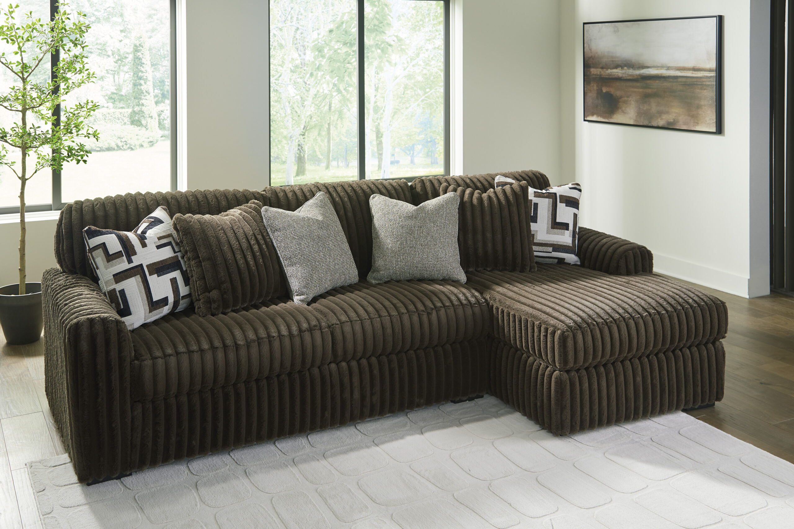 The Brown Corduroy Sectional with Chaise delivers a perfect balance of modern design and ultimate comfort, making it the ideal centerpiece for any living room or entertainment space.